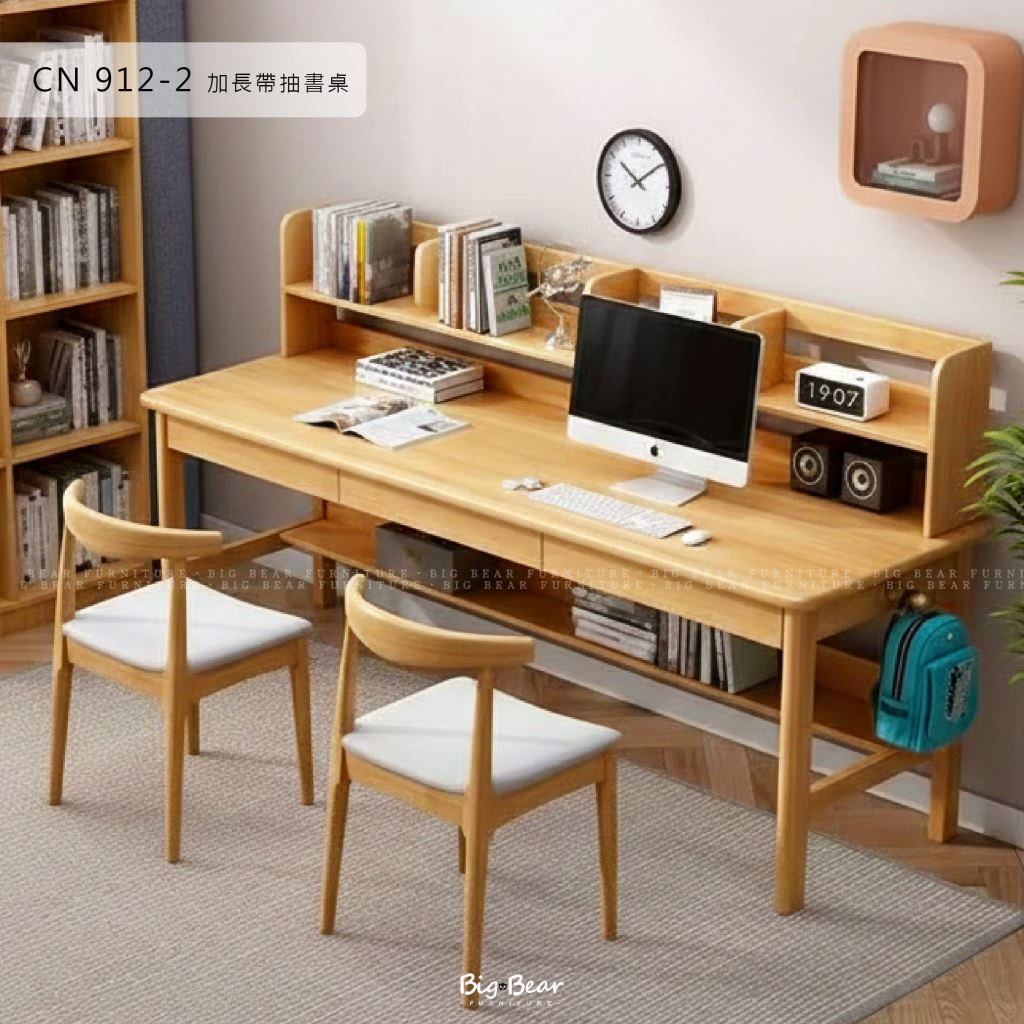 【北歐無印】CN 912-2 橡木加長帶抽書桌 (多色可選) 160cm/180cm