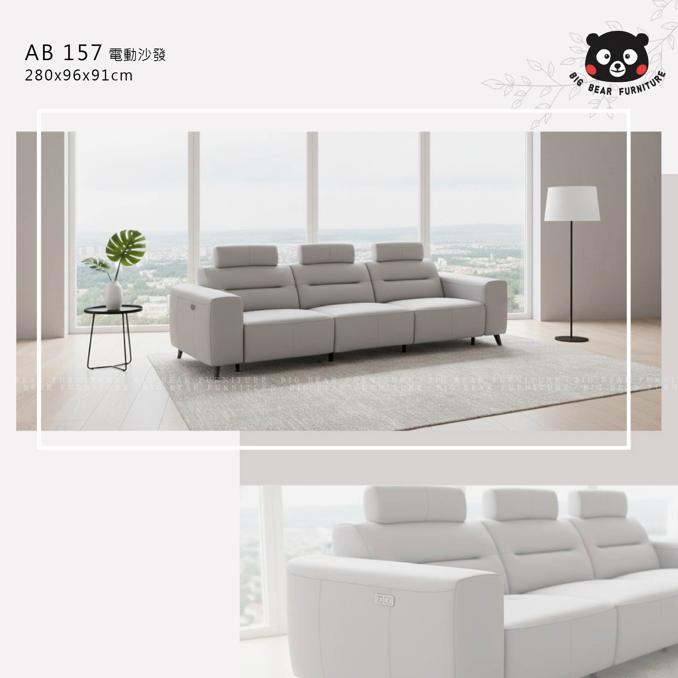 【現代簡約】AB 157 電動牛皮沙發