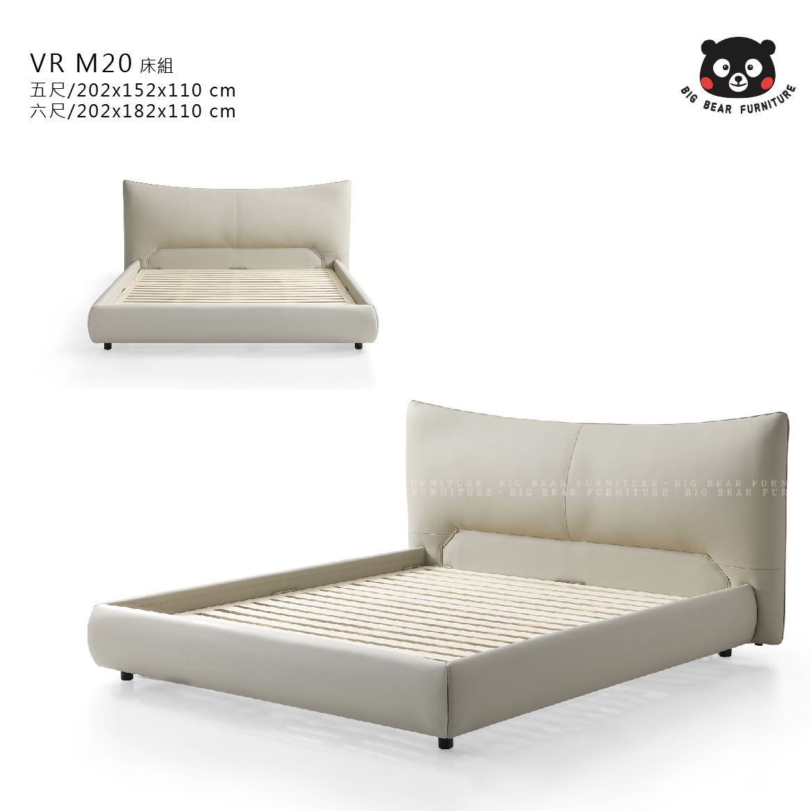 【現代簡約】VR M20 仿真皮床組 (五尺/六尺)
